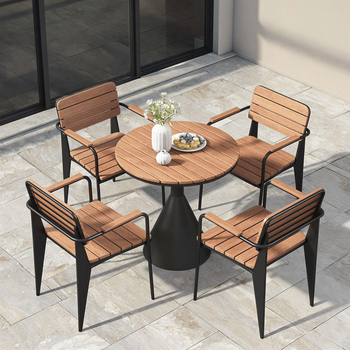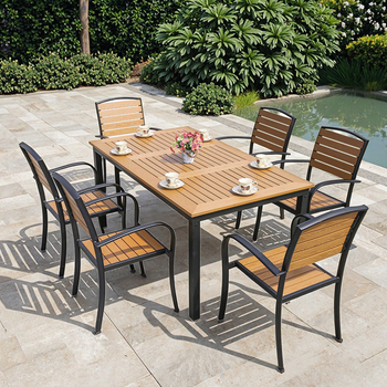 ชุดเฟอร์นิเจอร์พลาสติกสำหรับลานบ้านกันซึมสำหรับโต๊ะและเก้าอี้กลางแจ้งทำจากไม้